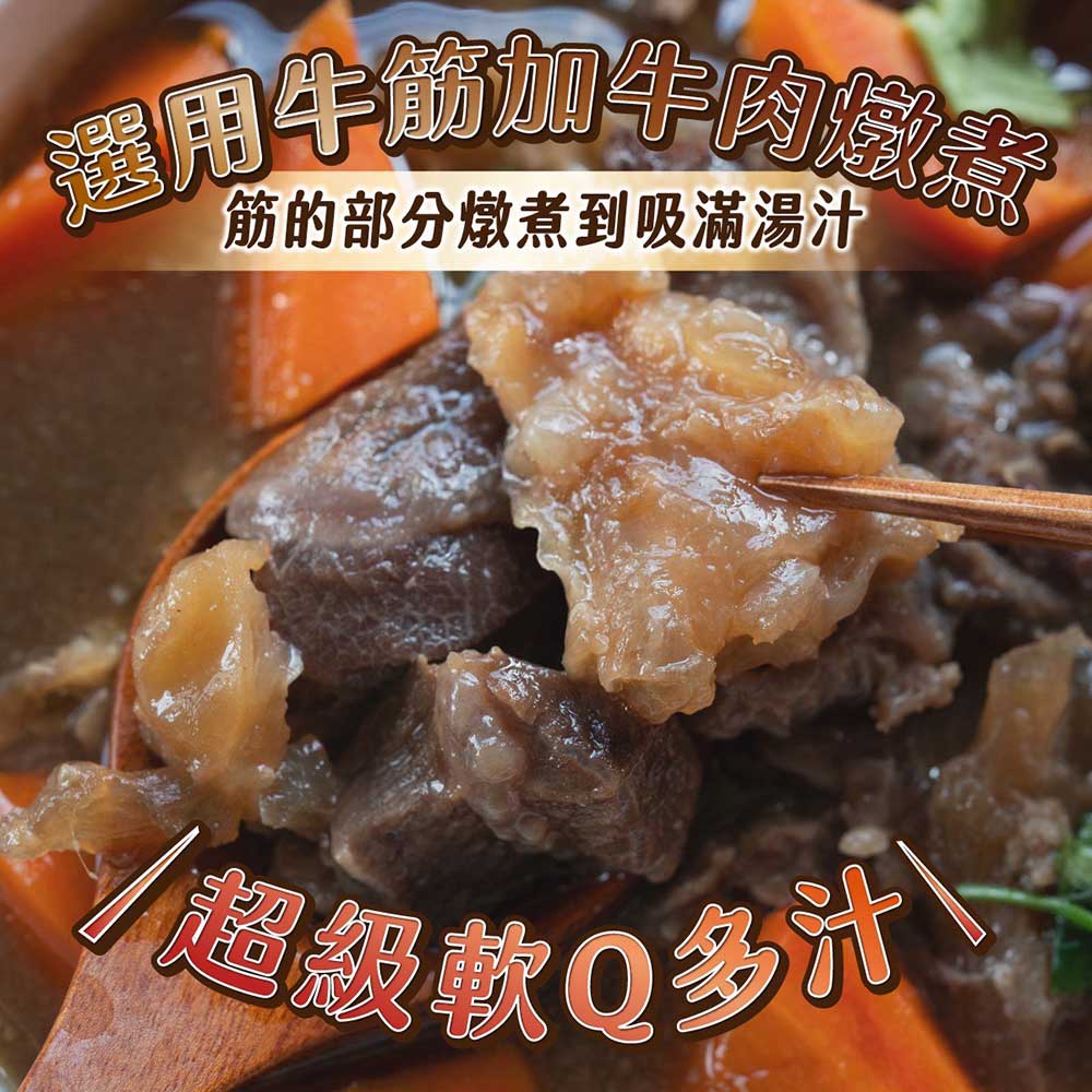 🐂選用半筋半肉的牛肉燉煮,筋的部分燉煮到吸滿湯汁、超級軟Q多汁