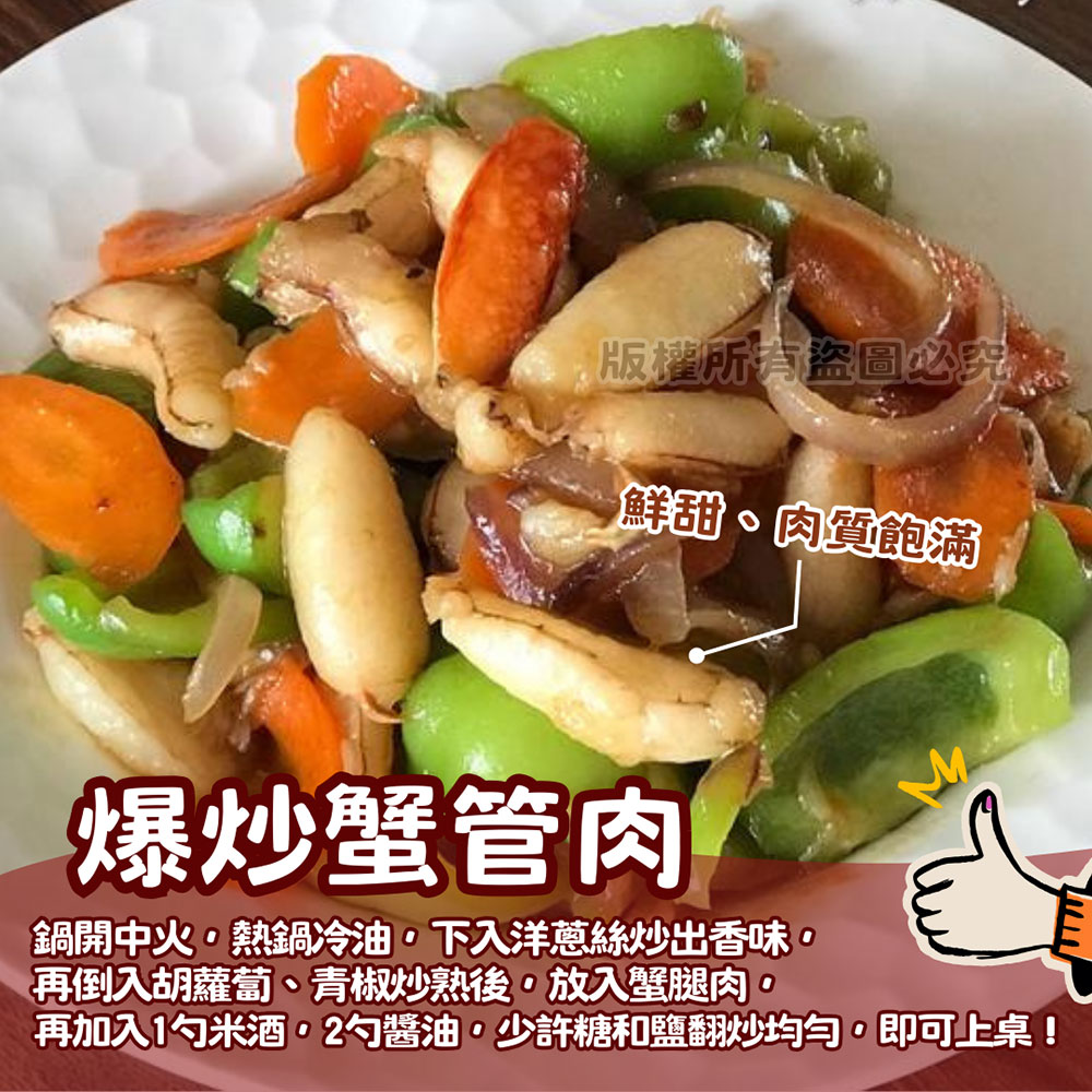 蟹管肉是蟹身中口感最穩定、肉質最集中的部位,